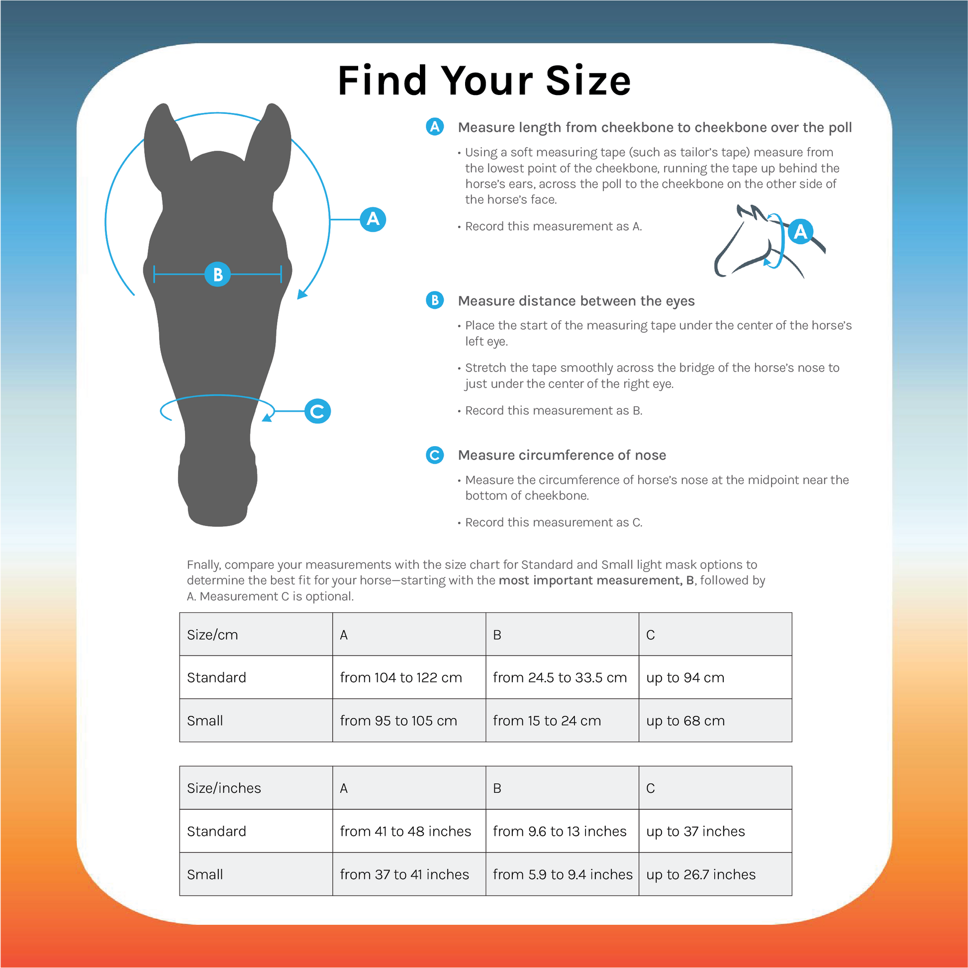 The Pro Light Mask features a fleece-lined headpiece, padded lining around the cup and long adjustable Velcro straps to ensure a comfortable and secure fit for your horse.